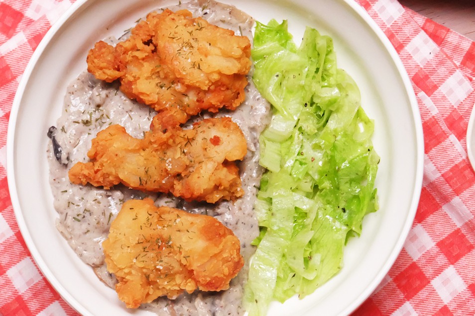 Karaage With Creamy Mushroom Gravy Lihat Resep